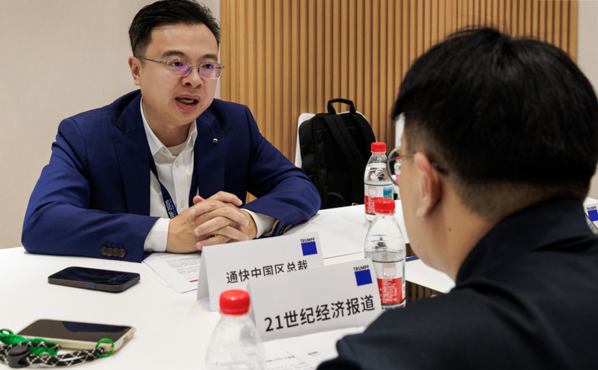 通快中国区总裁杨刚接受21世纪经济报道记者采访