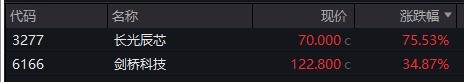 CPO概念股逆市大涨,长光辰芯大涨超75%,剑桥科技收涨超34%。