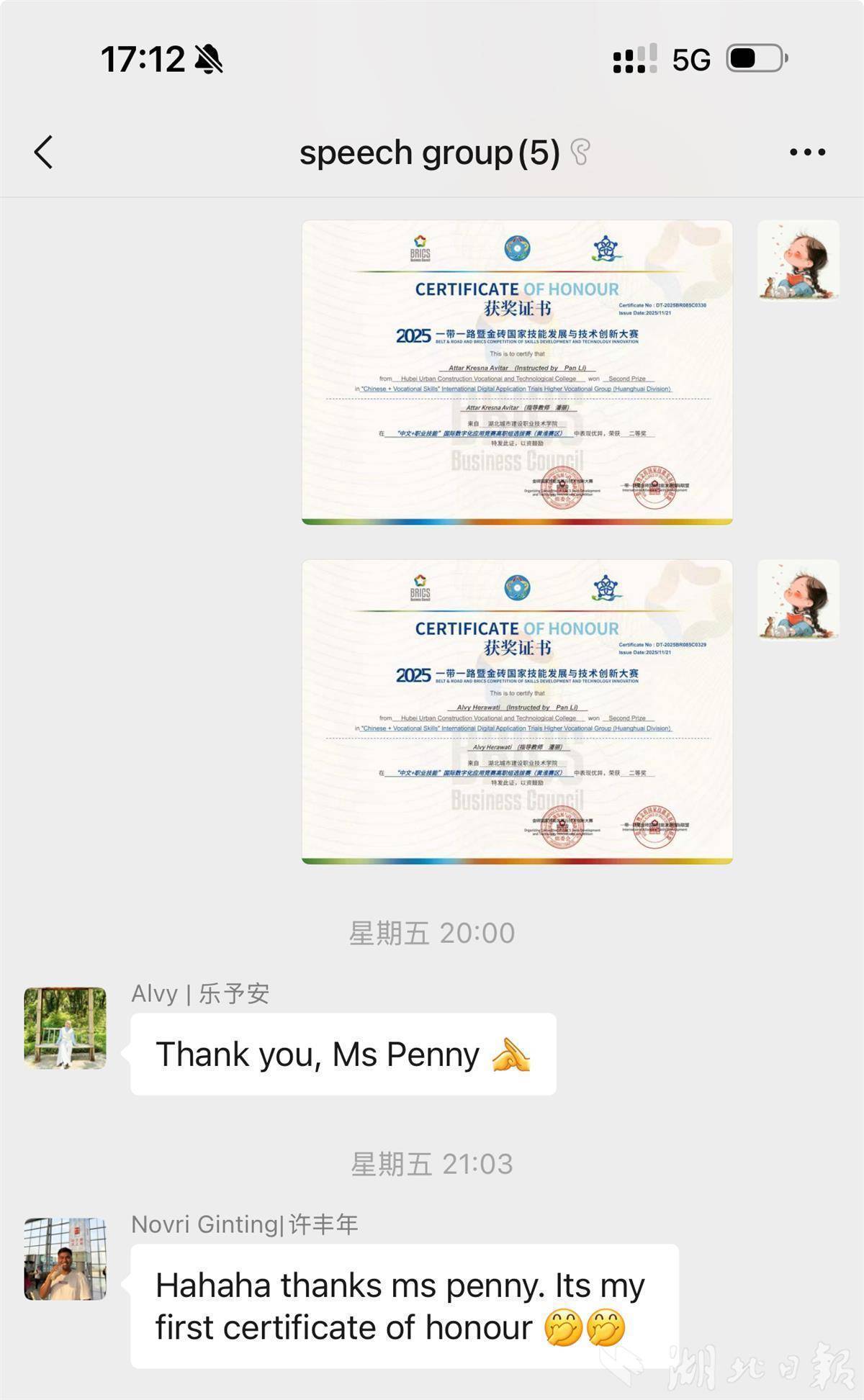 1月10日,湖北城市建设职业技术学院(以下简称“湖北建院”)的4名印尼留学生荣获“中文+职业技能”国际数字化应用竞赛国际组二等奖的证书来了。